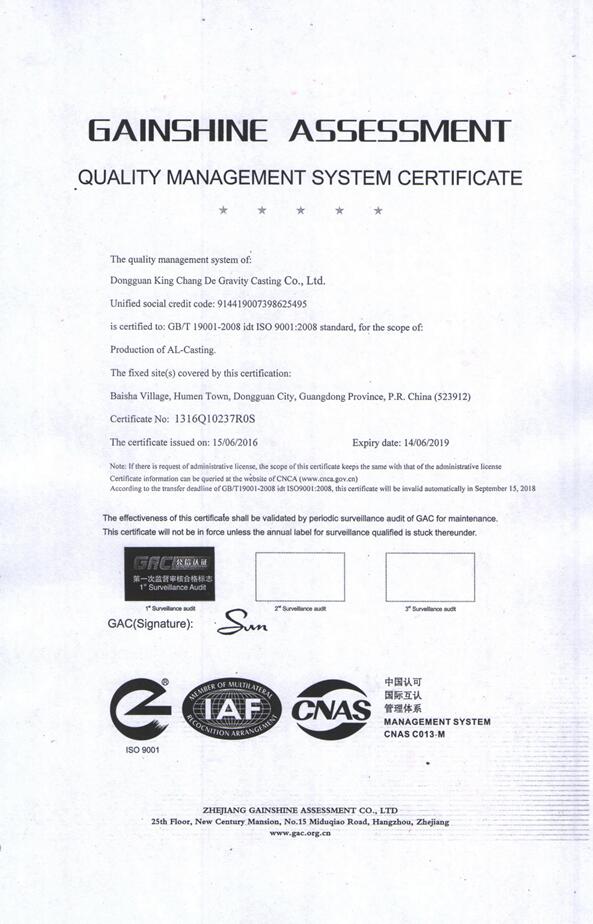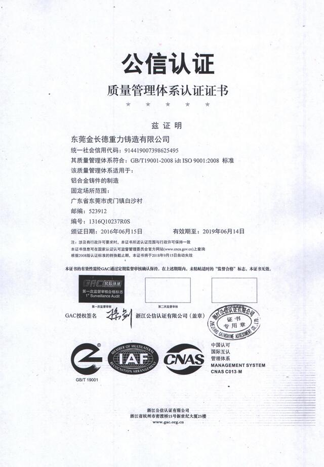 東莞金長德重力鑄造有限公司始建于1990年,是一家專業(yè)從事鋁合金重力鑄造、低壓鑄造、砂型鑄造的企業(yè)。位于廣東省東莞市虎門鎮(zhèn)白沙一村,已經有三十多年的歷史,專業(yè)從事于鋁合金鑄件的生產和加工。我司除了自己設計制作各種鑄造類模具外,鑄造和機械加工為一體是我公司的另外一個生產特色。我們可以根據(jù)客戶的要求,來樣,來圖進行模具的設計和產品的生產,做出各種毛胚件和成品件。還有自動射芯機,拋丸機,噴砂機,熱處理機器多臺,CNC數(shù)控加工中心,銑床等設備。 我司的產品領域包括了新能源電機、機器人零件、汽摩配件,火車零件,機械零件,馬達風機,空壓機系列,印刷機械零件,木工和醫(yī)療器械零件等類型,產品出口到意大利,法國,美國,英國,以色列,日本,臺灣等國家和地區(qū),深受國內外客戶的認可和好評。